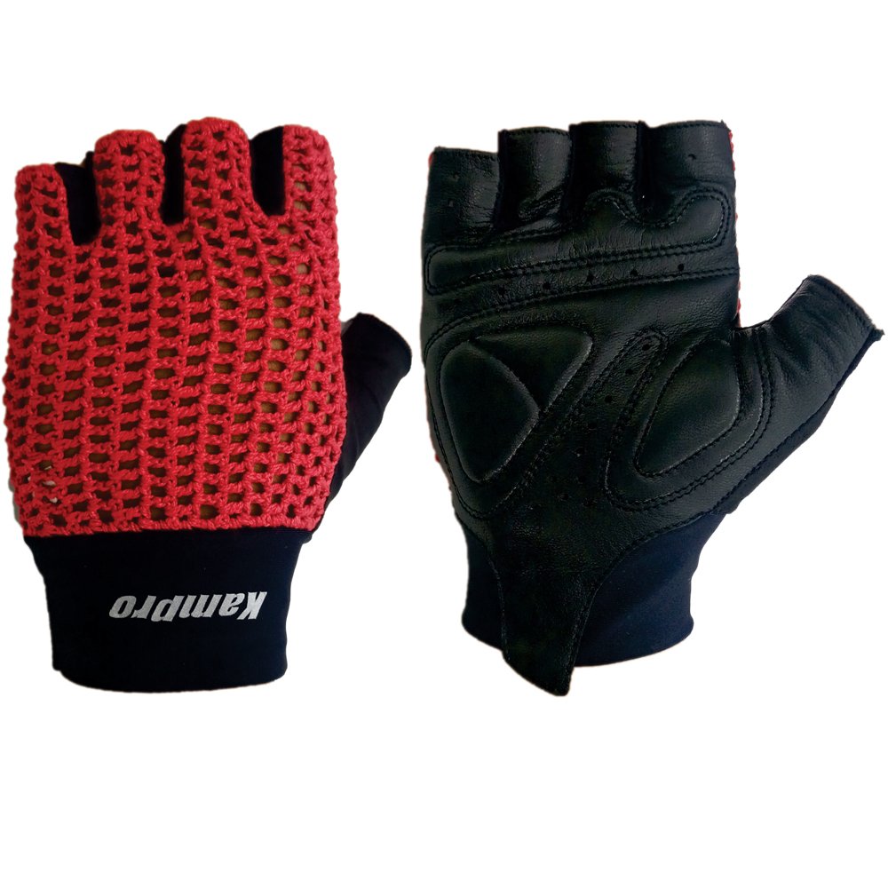 1- Genuine Leather Palm 2- Open and Closed Cell foam Padding 3- Traditional Cotton Crochet Back 4- Suede Fabric Thumb to Wipe Sweat 5- Stretchable Poly Spandex Cuff"